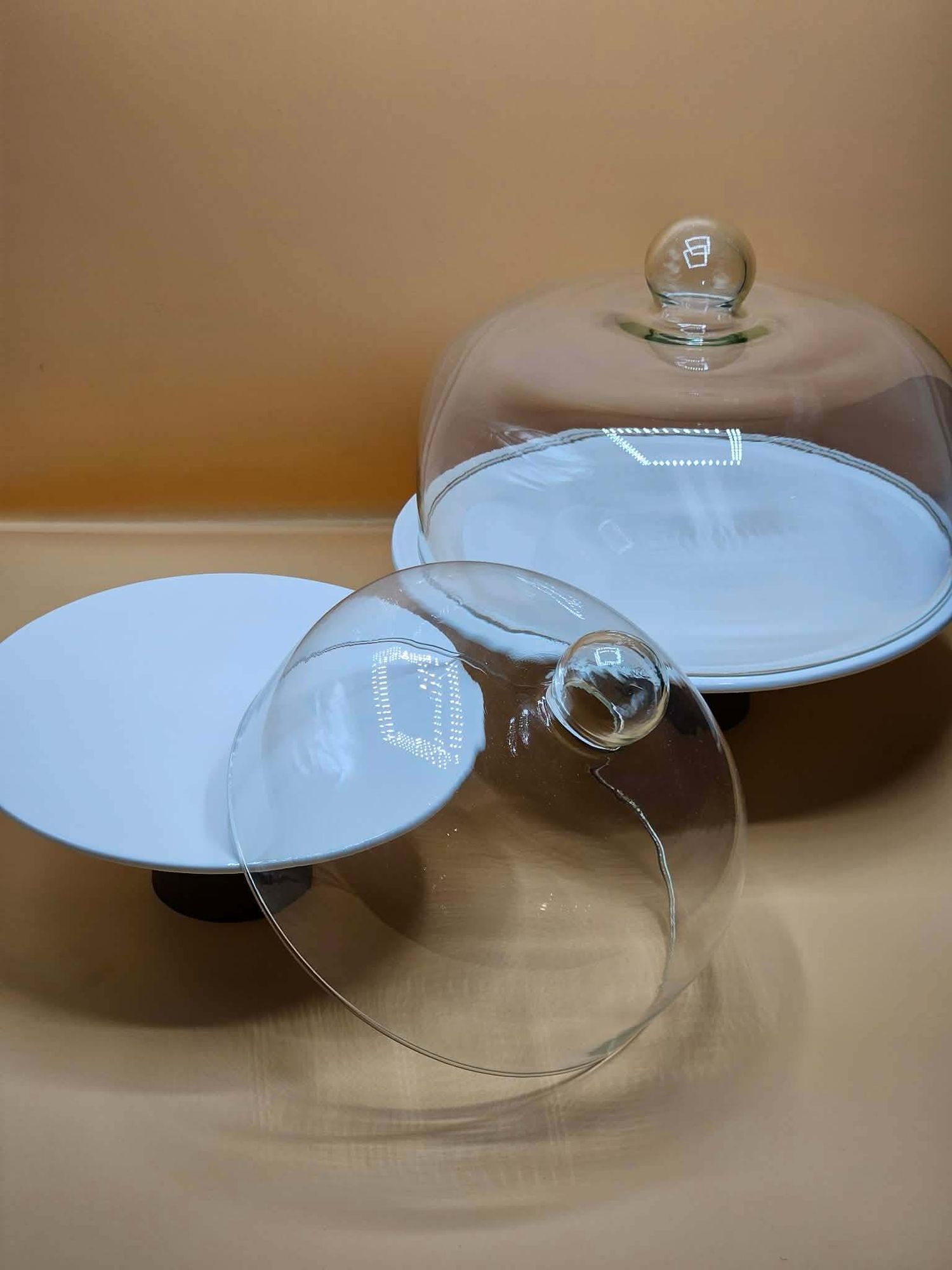 Модон хөлтэй шилэн таглаатай таваг 25см